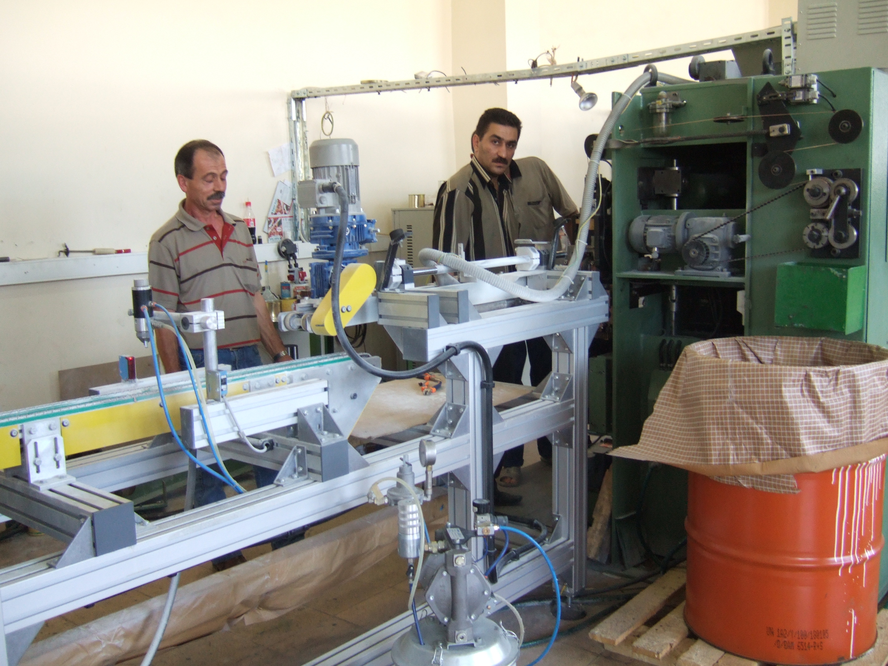 コンビーフ工場を診断 中央はマサイ族の工場長 |